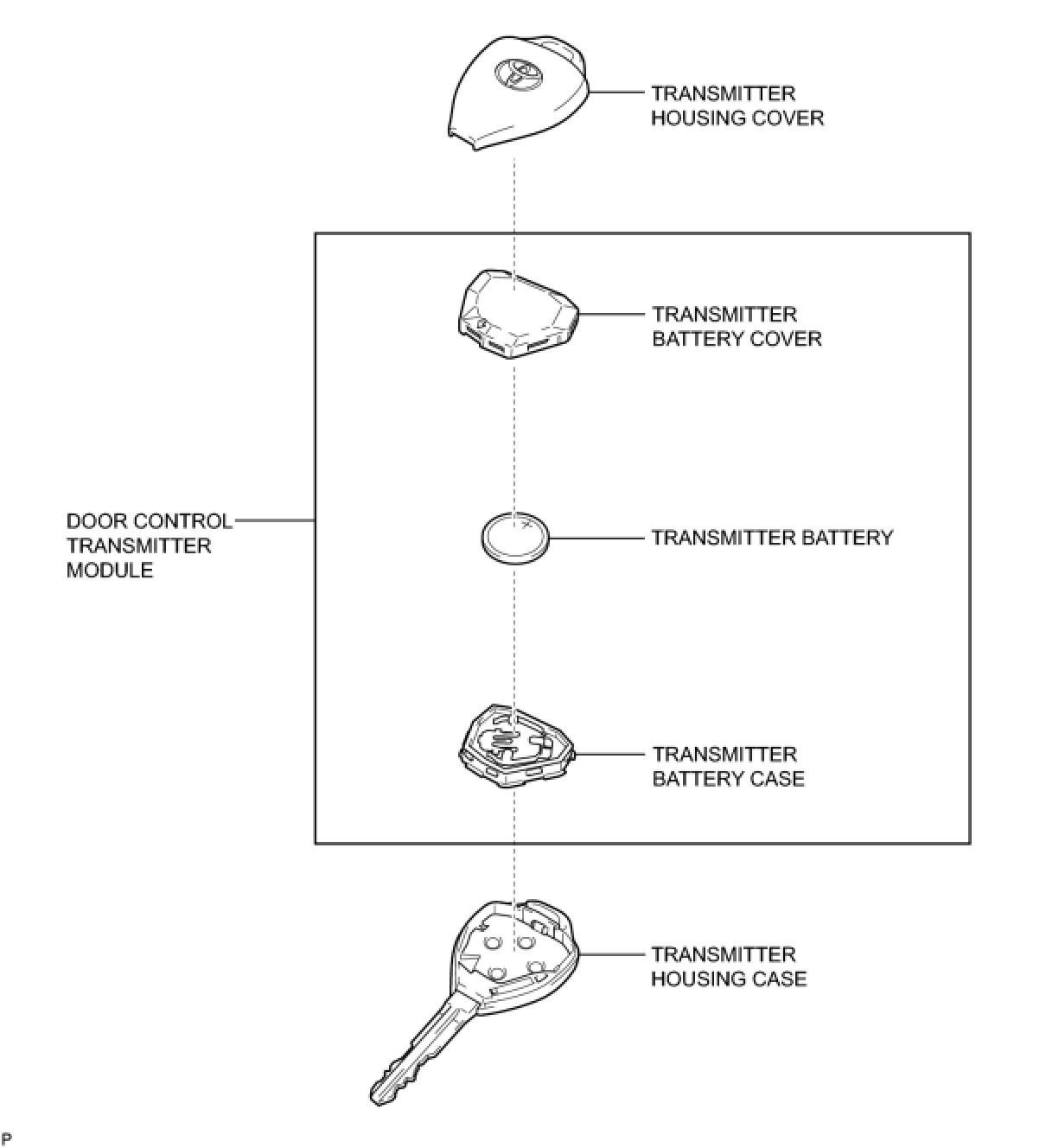 DOOR LOCK: DOOR CONTROL TRANSMITTER (w/o Smart Key System): COMPONENTS