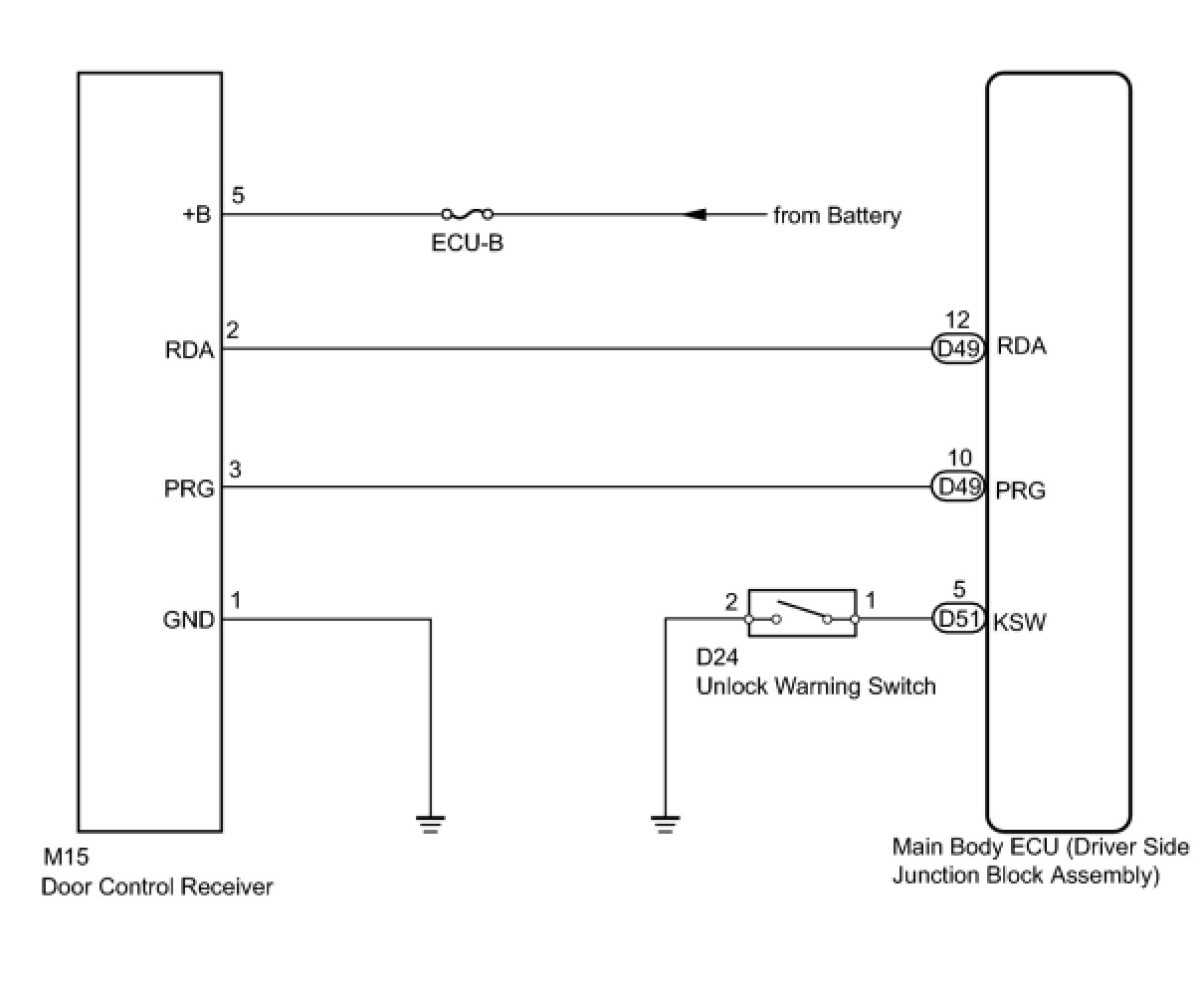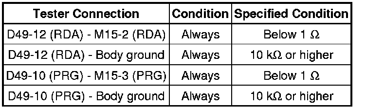 (a) Disconnect the D49 main body ECU connector and the M15 door control receiver connector.