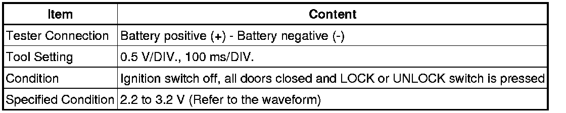 Measure the transmitter battery voltage while pressing the LOCK or UNLOCK switch on the transmitter.