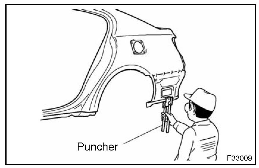 1. For areas where a spot welder cannot be used, use a puncher or drill to make holes for plug welding.