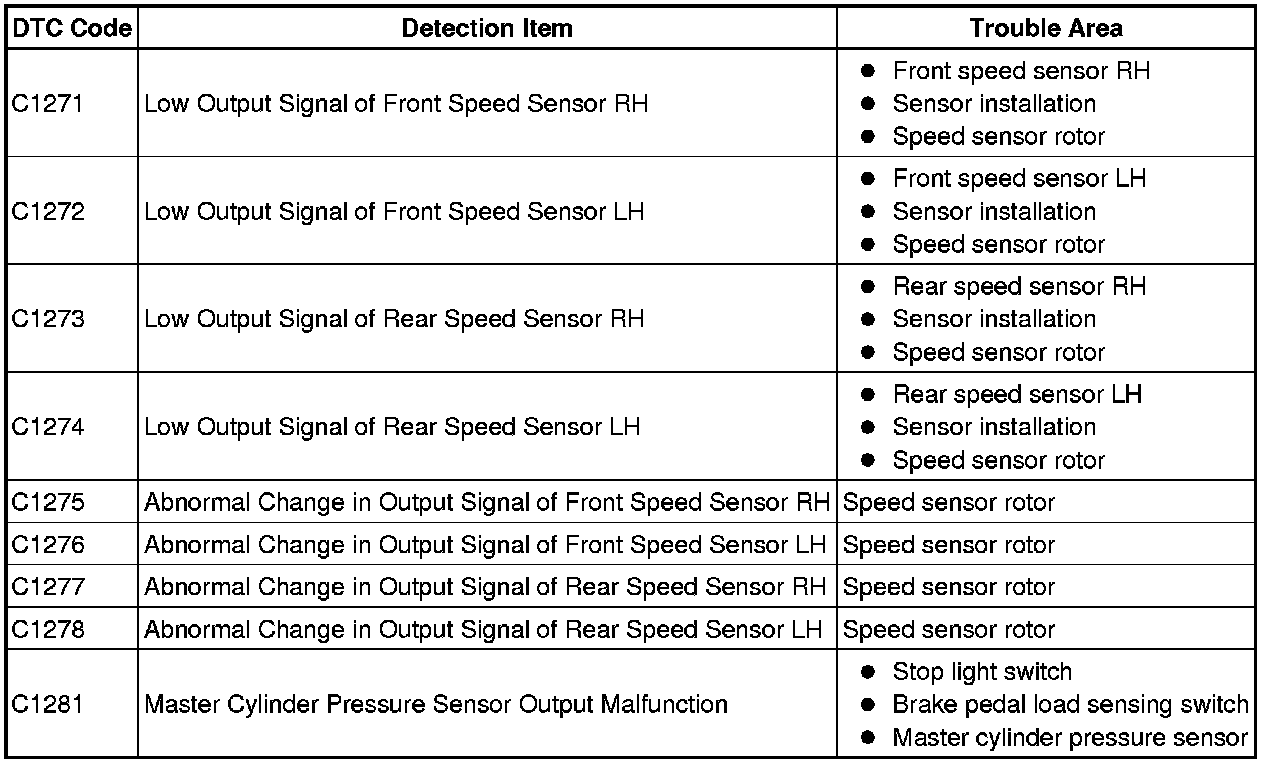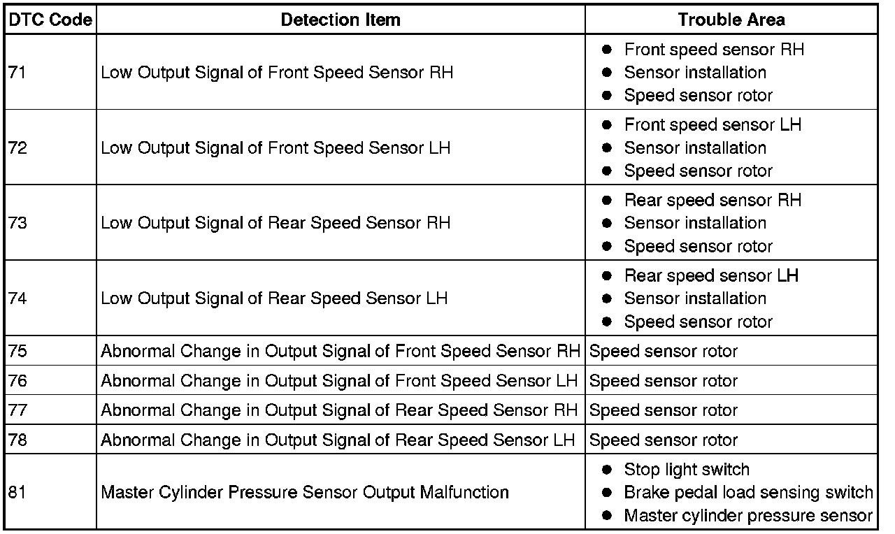* After the ABS warning light goes off, if the vehicle speed exceeds 80 km/h (50 mph), a sensor check code will be stored again.