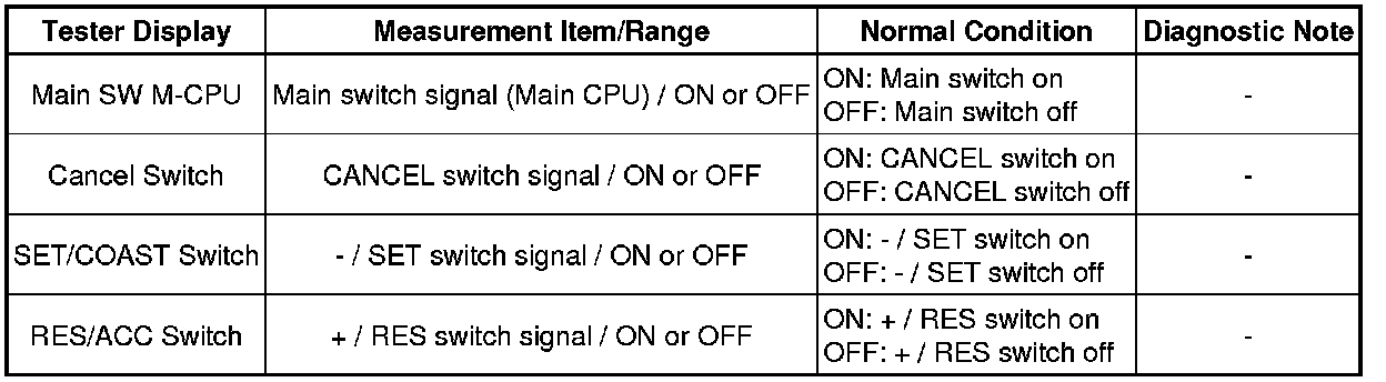 CRUISE CONTROL: CRUISE CONTROL SYSTEM: Cruise Control Switch Circuit