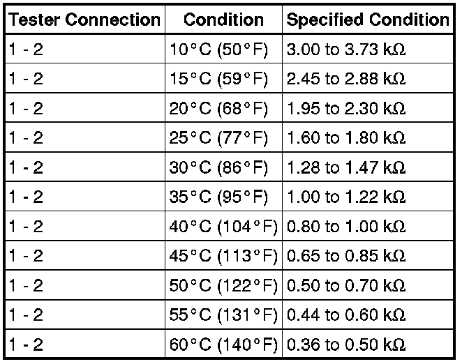 If the resistance is not as specified, replace the ambient temperature sensor.