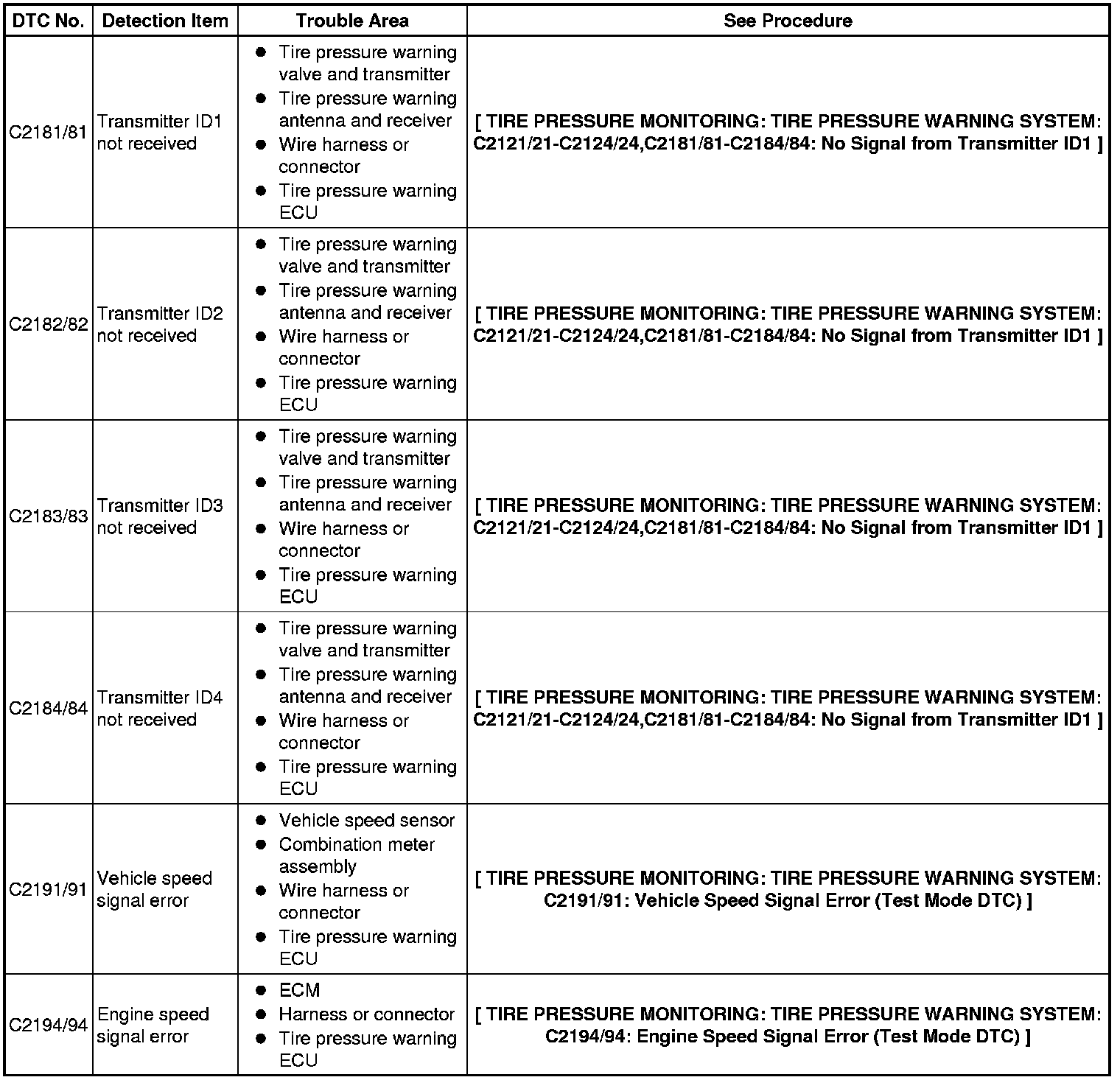 * When entering signal check mode, the tire pressure warning ECU sets all the signal check DTCs (test mode DTCs) first.