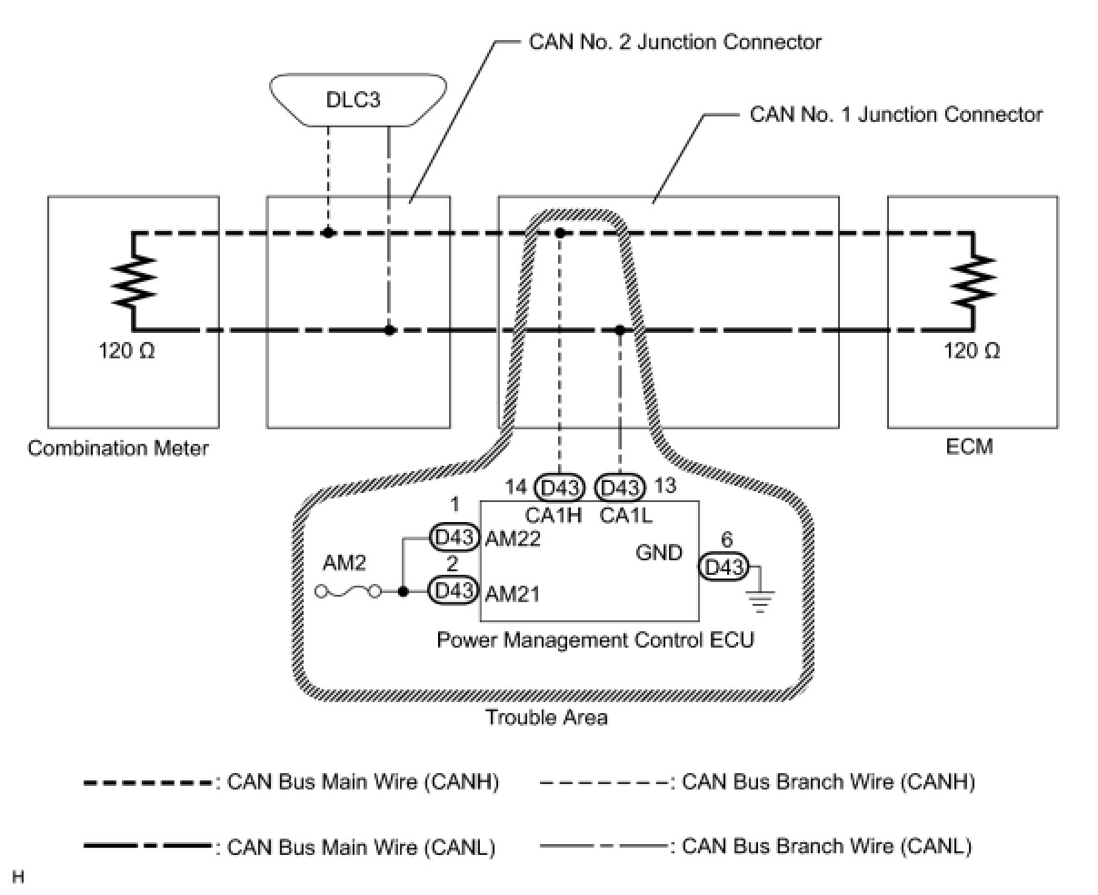 NG -- REPAIR OR REPLACE CAN NO. 1 BUS BRANCH WIRE OR CONNECTOR (POWER MANAGEMENT CONTROL ECU)