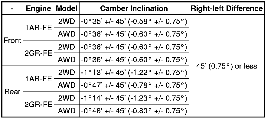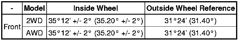 SPECIFICATIONS: ALIGNMENT / HANDLING DIAGNOSIS: SERVICE DATA