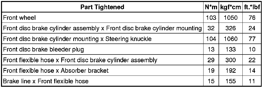 SPECIFICATIONS: BRAKE (FRONT): TORQUE SPECIFICATIONS