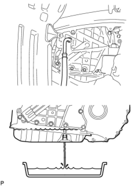 (a) The U760F automatic transaxle does not have an oil filler tube and oil level gauge. When adding fluid, add fluid through the refill hole on the transaxle case. The fluid level can be adjusted by draining excess fluid (allowing excess fluid to overflow) through the No. 1 transmission oil filler tube of the oil pan.