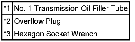 * If ATF comes out, it is not necessary to perform the initial filling procedure. After checking the tightening torque of the No. 1 transmission oil filler tube, temporarily tighten the overflow plug.