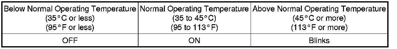 In the fluid temperature detection mode, the D shift indicator comes on, goes off, or blinks depending on the fluid temperature.