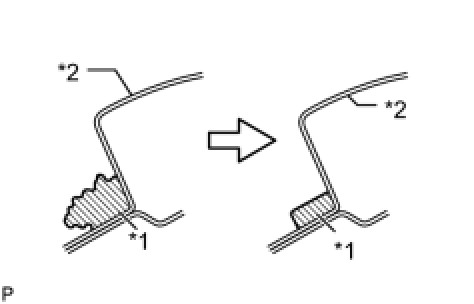 (1) Using a knife, cut away excess adhesive on the contact surfaces of the vehicle body, as shown in the illustration.