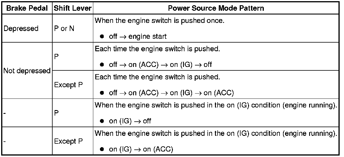 (1) Check that power source mode changes in accordance with the conditions of the shift position and brake pedal.