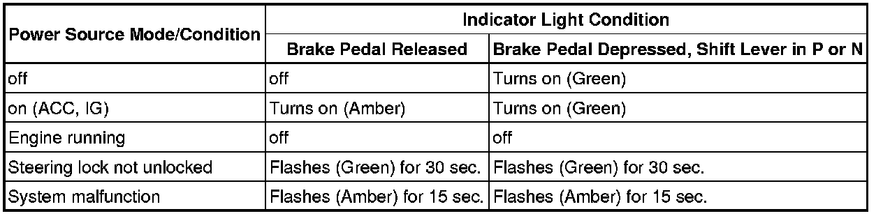 (1) Check that the engine switch indicator turns on and changes color according to the table below.