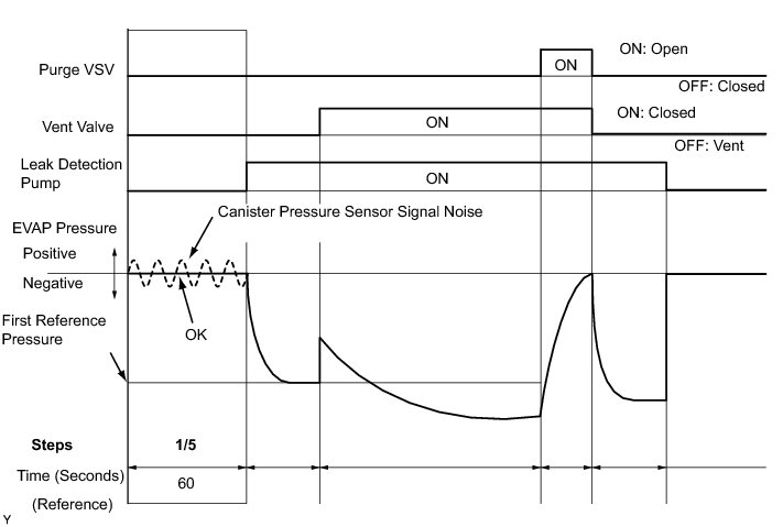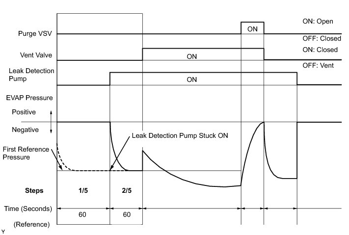 (b) Compare the EVAP pressure in step 3/5 and the second reference pressure (step 5/5).