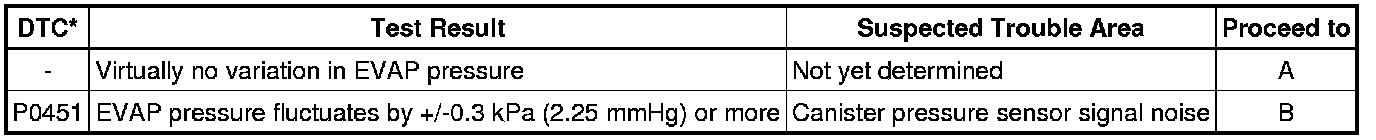 If any EVAP system DTCs are set, the malfunctioning area can be determined using the table below.
