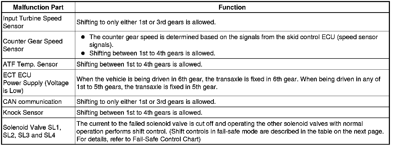 U660E AUTOMATIC TRANSMISSION / TRANSAXLE: AUTOMATIC TRANSAXLE SYSTEM: FAIL-SAFE CHART