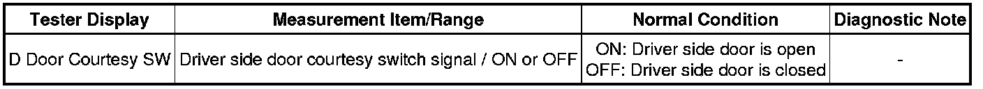 NG -- INSPECT FRONT DOOR COURTESY SWITCH ASSEMBLY (DRIVER SIDE)