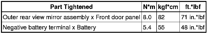 SERVICE SPECIFICATIONS: MIRROR: TORQUE SPECIFICATIONS