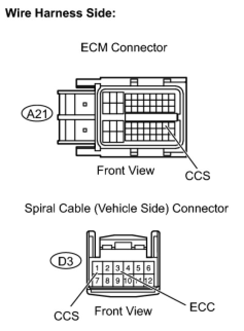 3. CHECK HARNESS AND CONNECTOR (CRUISE CONTROL MAIN SWITCH - SPIRAL CABLE)