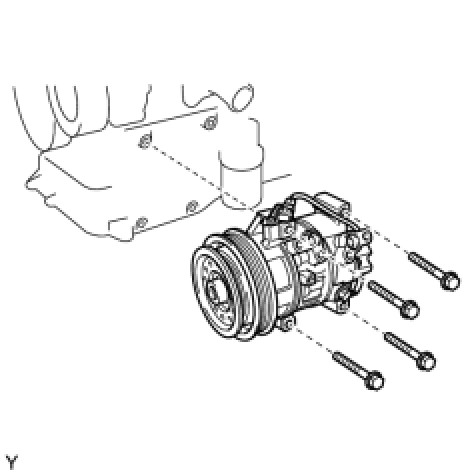 (b) Remove the 4 bolts and compressor.