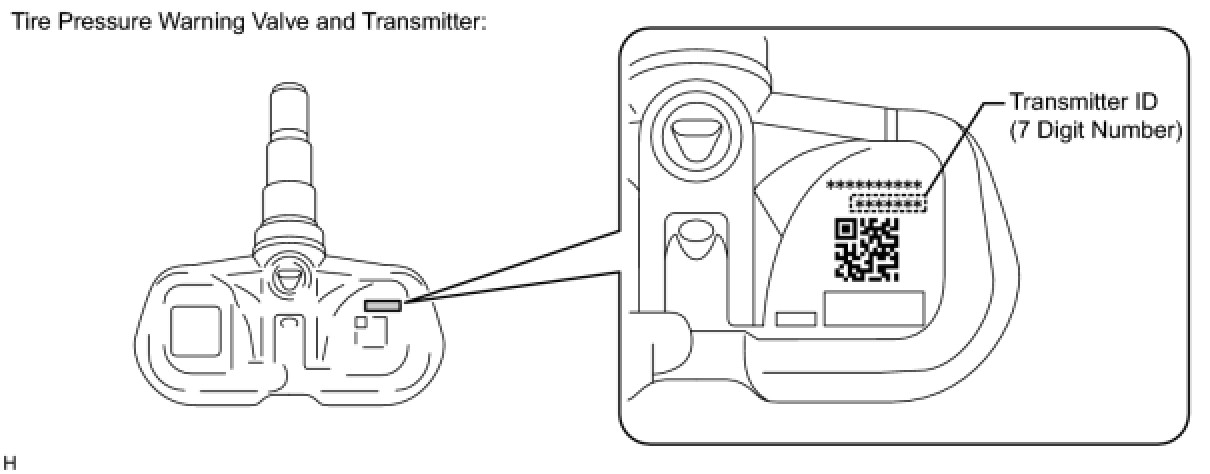 The transmitter ID is written on the tire pressure warning valve and transmitter. It will be unable to be read after installing the tire pressure warning valve and transmitter on the tire and wheel. Therefore, take a note of the transmitter ID before installing the tire pressure warning valve and transmitter.
