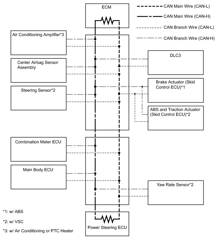 (1) The main wire is a wire harness between the two terminus circuits on the bus (communication line). This is the main bus in the CAN communication system.