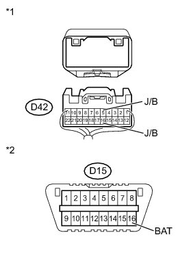 There may be a short circuit between the CAN bus line and +B when no resistance exists between terminals 6 (CANH) and 16 (BAT) or terminals 14 (CANL) and 16 (BAT) of the DLC3.