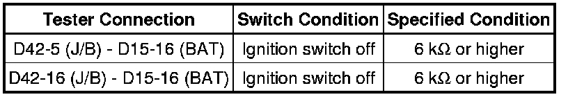 * Before measuring the resistance, leave the vehicle as is for at least 1 minute and do not operate the ignition switch, any other switches or the doors. If doors need to be opened in order to check connectors, open the doors and leave them open.