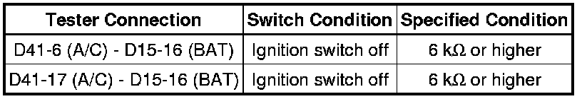 The resistance must be measured after the D41 D-CAN junction connector is disconnected.