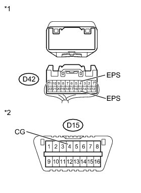 There may be a short circuit between the CAN bus line and GND when there is resistance between terminals 6 (CANH) and 4 (CG) or terminals 14 (CANL) and 4 (CG) of the DLC3.