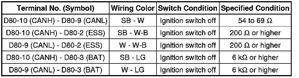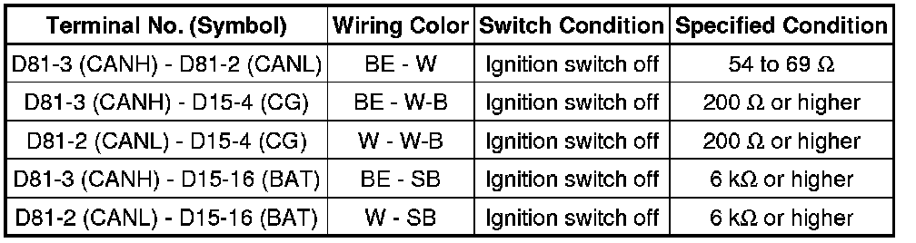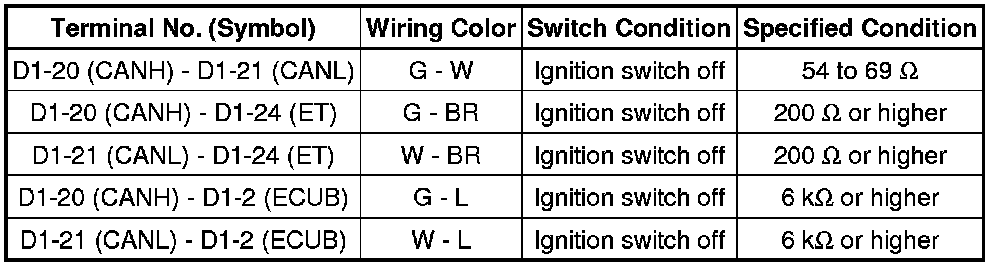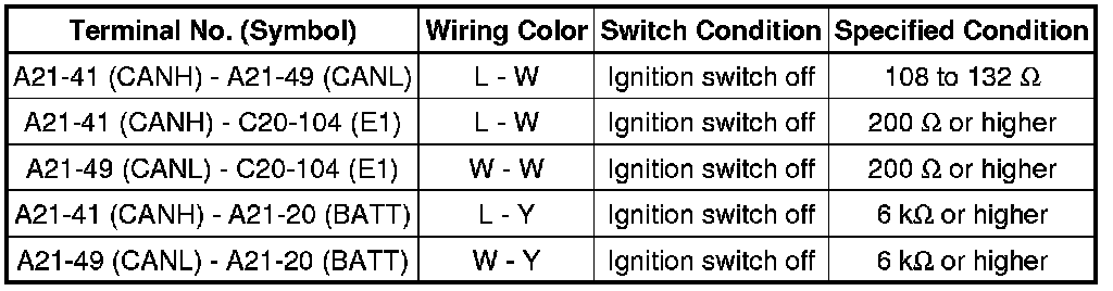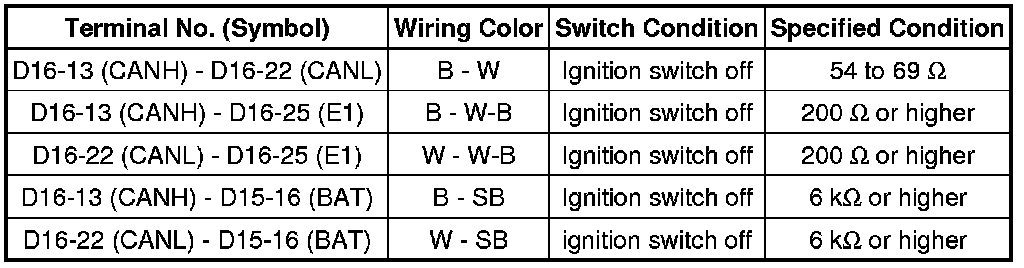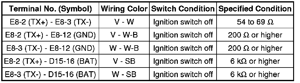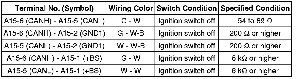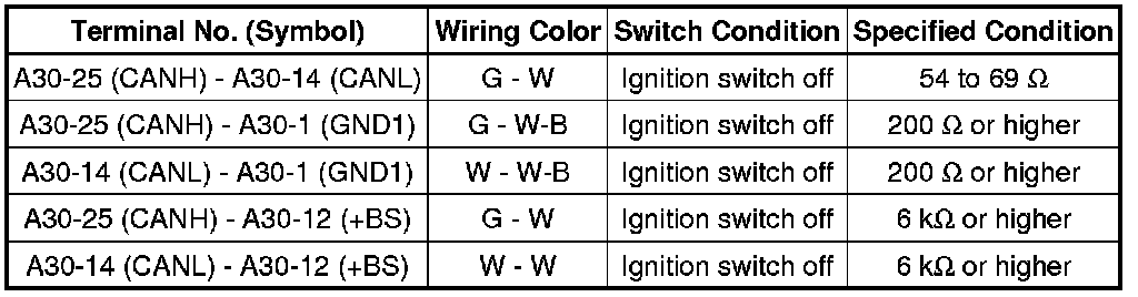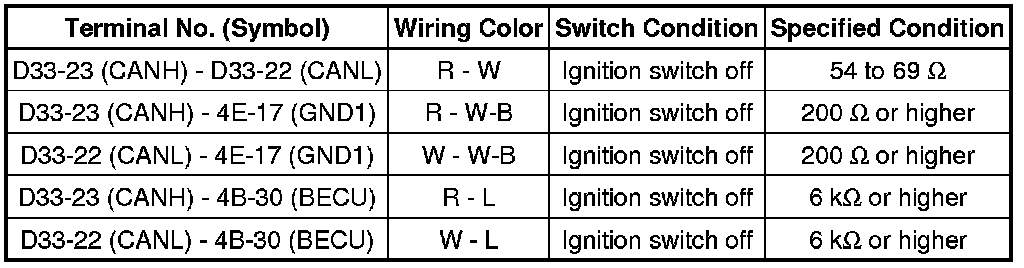 * Turn the ignition switch off before measuring the resistances of the CAN main wire and the CAN branch wire.