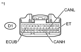 (b) Disconnect the D1 combination meter ECU connector.