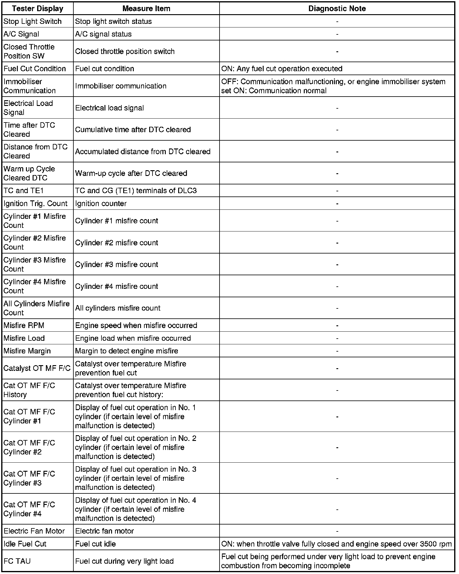 2. LIST OF FREEZE FRAME DATA