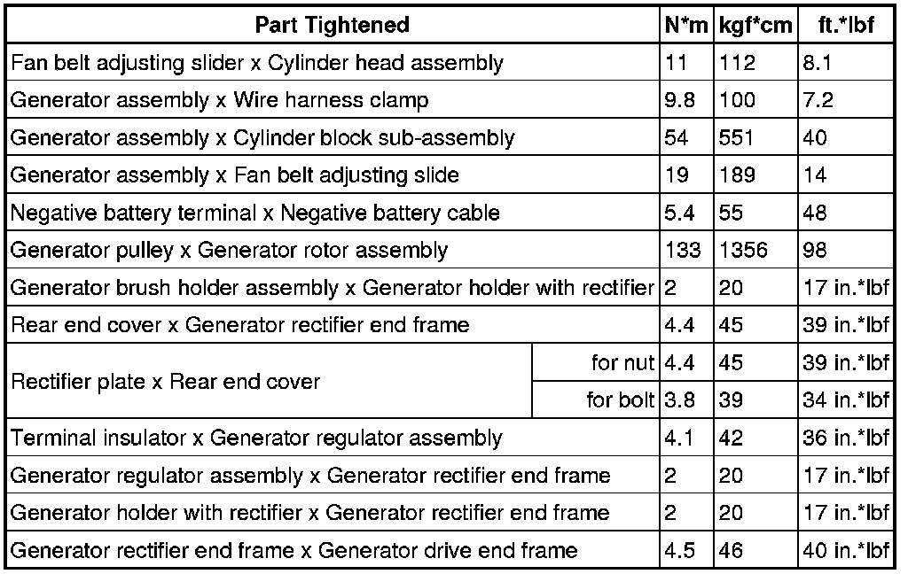 SERVICE SPECIFICATIONS: 1NZ-FE CHARGING: TORQUE SPECIFICATIONS