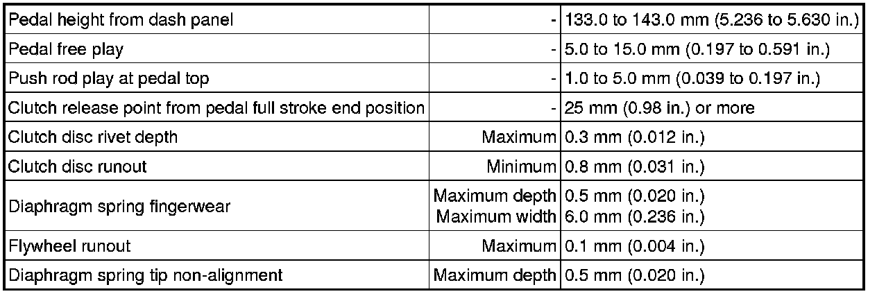 SERVICE SPECIFICATIONS: CLUTCH: SERVICE DATA