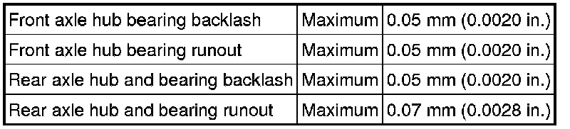 SERVICE SPECIFICATIONS: AXLE: SERVICE DATA