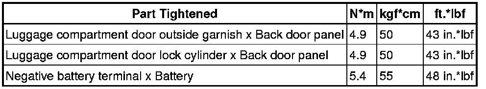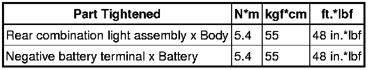 SERVICE SPECIFICATIONS: LIGHTING: TORQUE SPECIFICATIONS