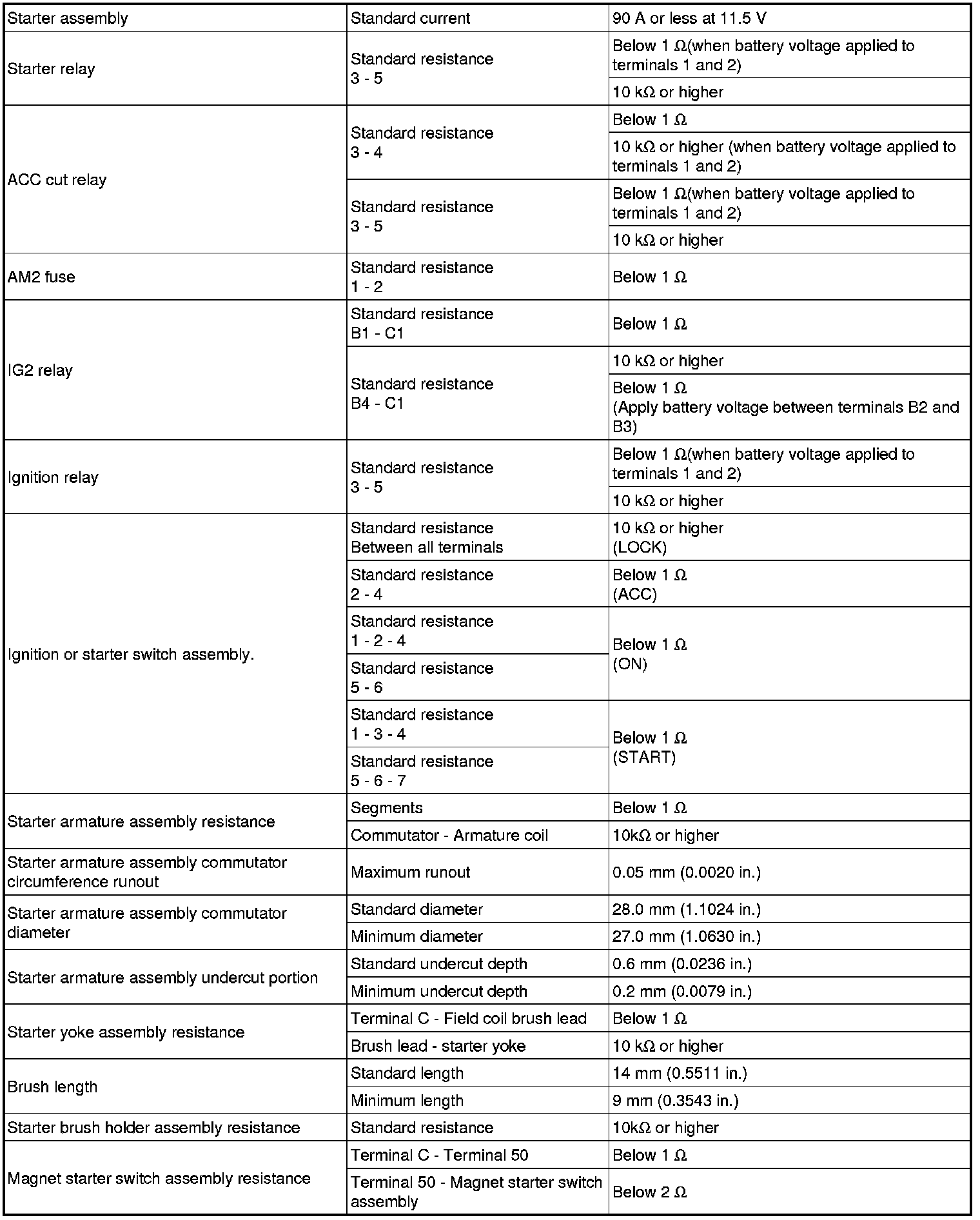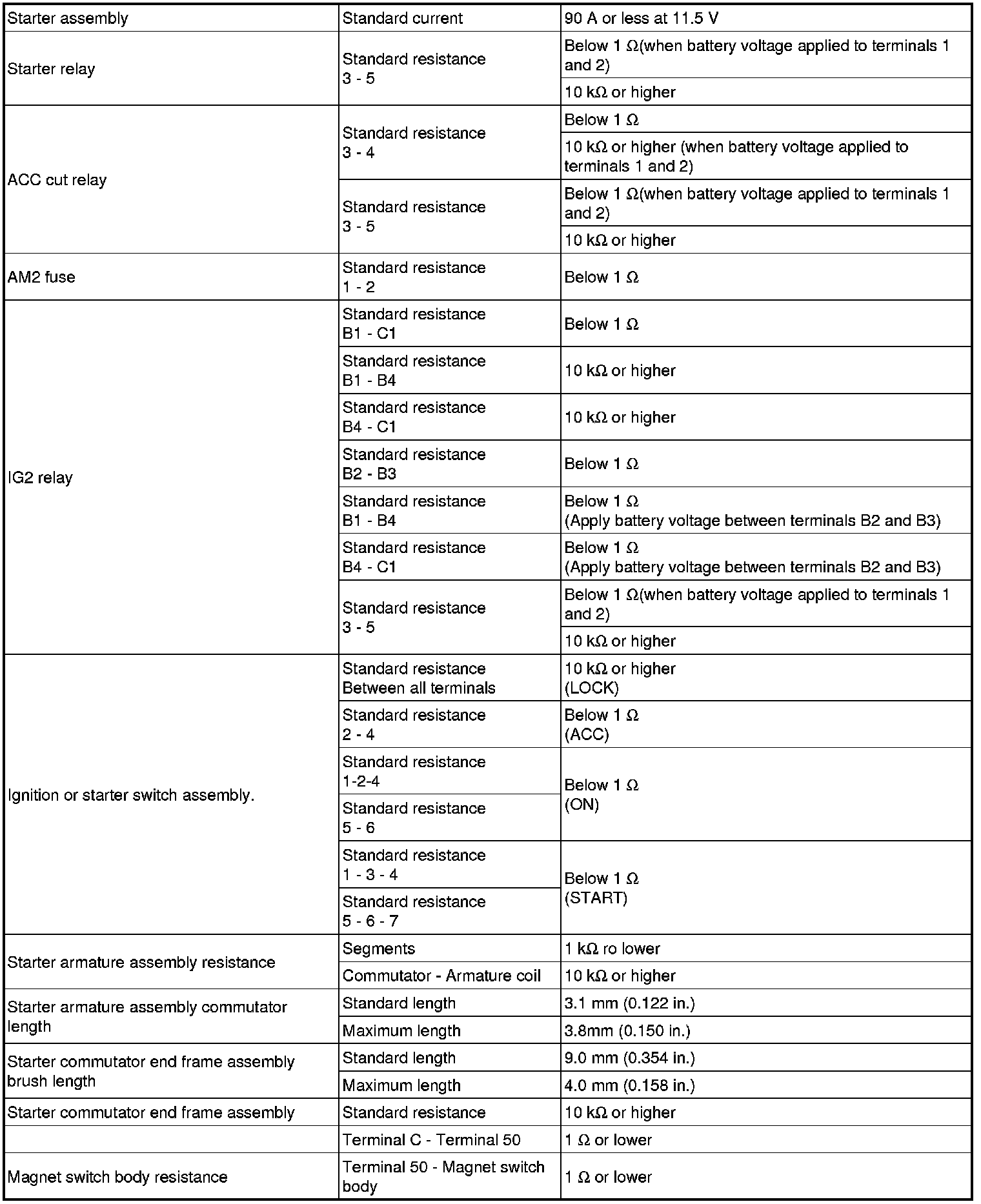 SERVICE SPECIFICATIONS: 1NZ-FE STARTING: SERVICE DATA