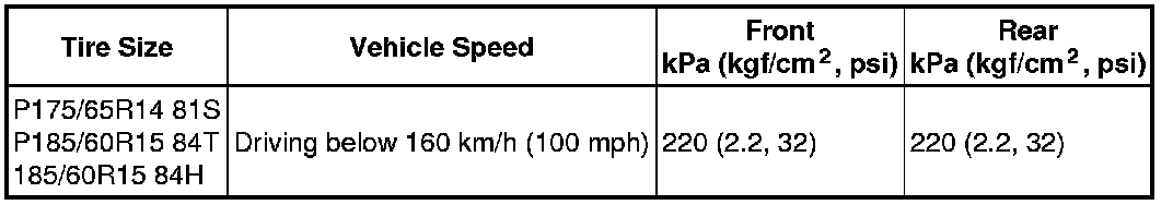 Sedan (Cold tire inflation pressure)