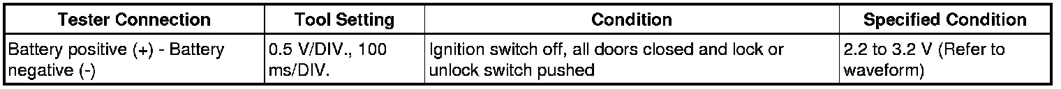 Measure the transmitter battery voltage while pressing the lock or unlock switch on the transmitter.
