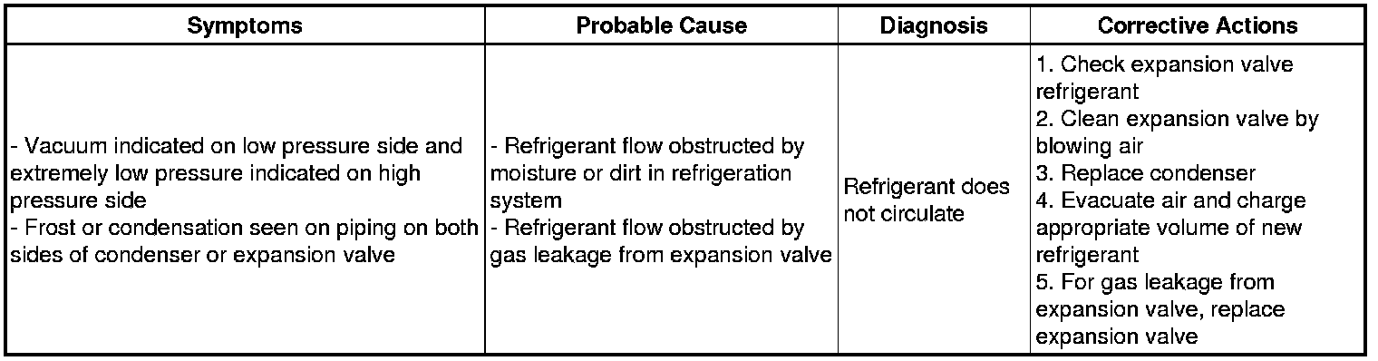 (7) The A/C system does not function due to air in the refrigeration system.