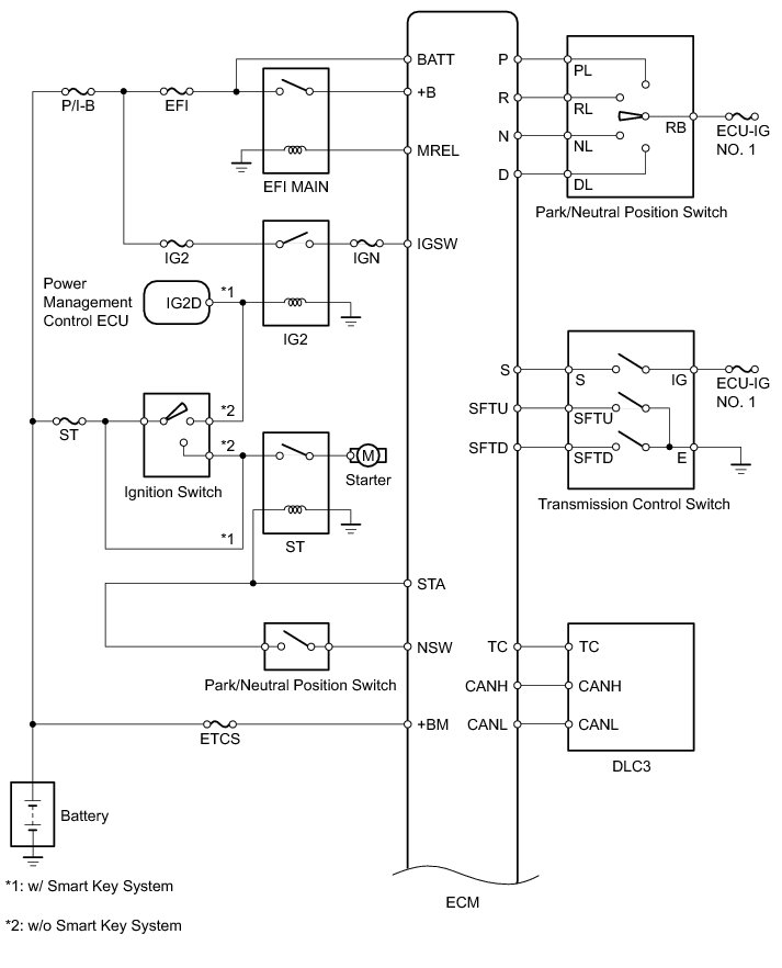 The configuration of the electronic control system for the A750E automatic transmission is as shown in the following chart.