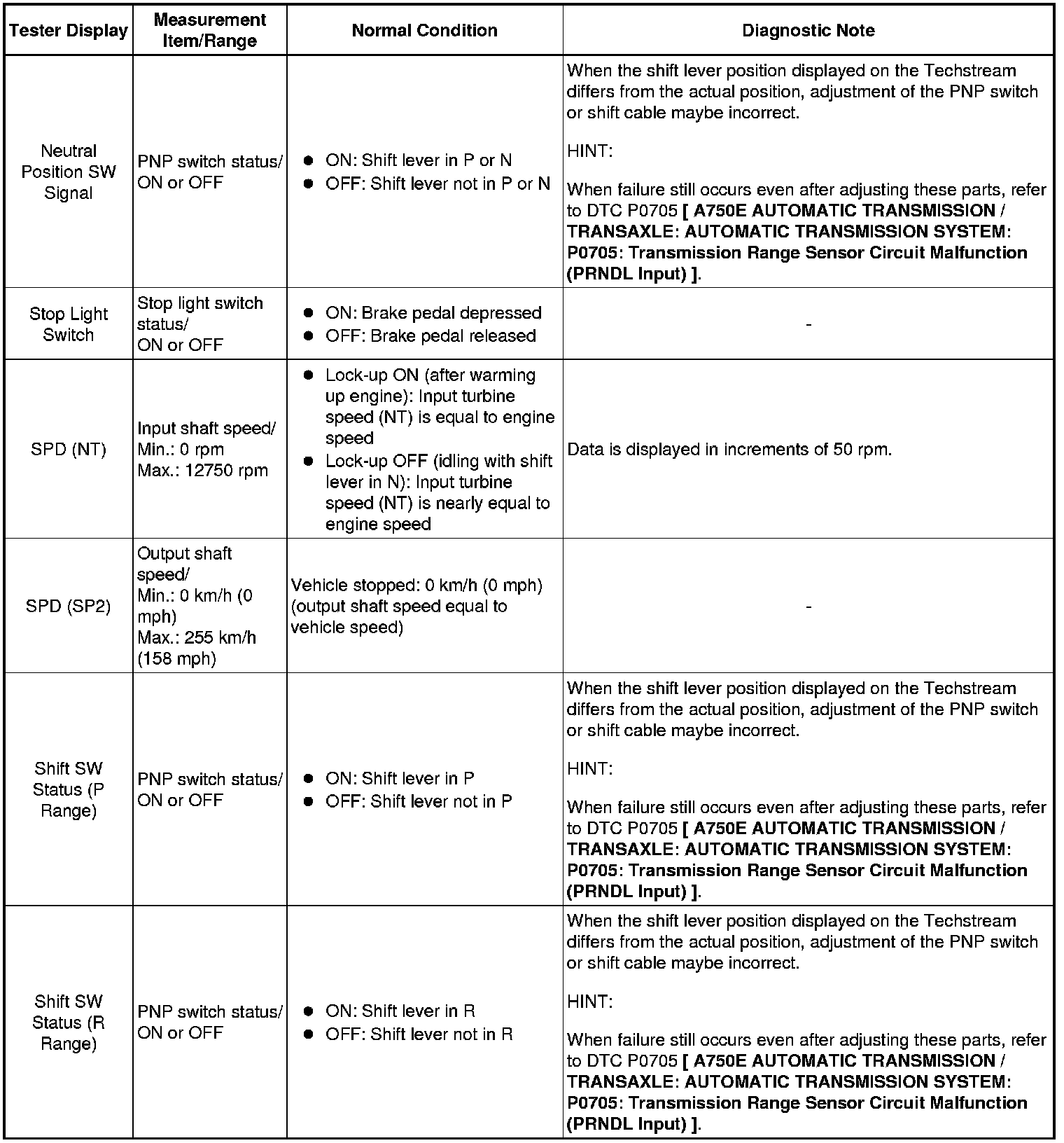 A750E AUTOMATIC TRANSMISSION / TRANSAXLE: AUTOMATIC TRANSMISSION SYSTEM: DATA LIST / ACTIVE TEST