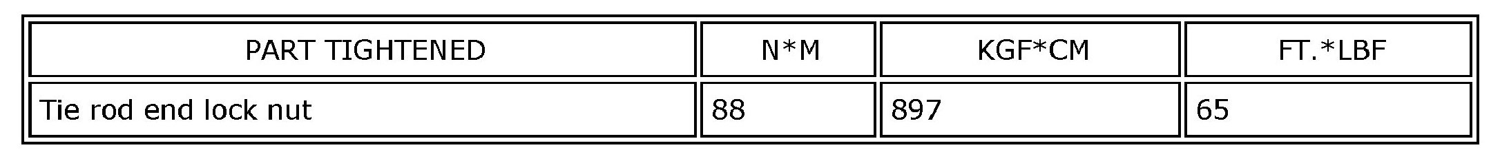 SPECIFICATIONS: ALIGNMENT / HANDLING DIAGNOSIS: TORQUE SPECIFICATIONS