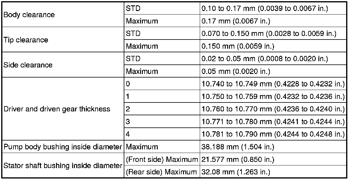 SPECIFICATIONS: A750E AUTOMATIC TRANSMISSION / TRANSAXLE: SERVICE DATA