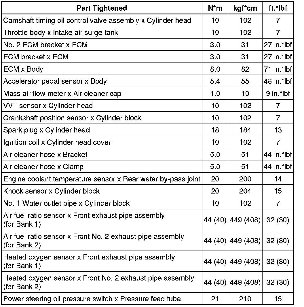 SPECIFICATIONS: 1GR-FE ENGINE CONTROL: TORQUE SPECIFICATIONS