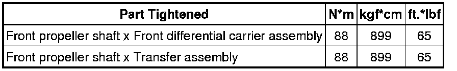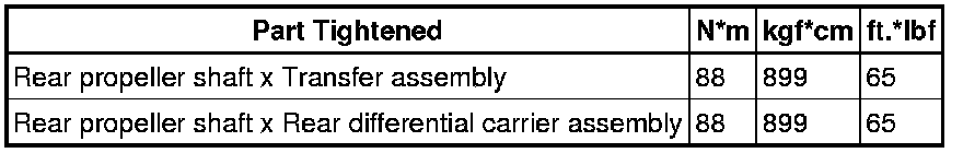 SPECIFICATIONS: DRIVE SHAFT / PROPELLER SHAFT: TORQUE SPECIFICATIONS