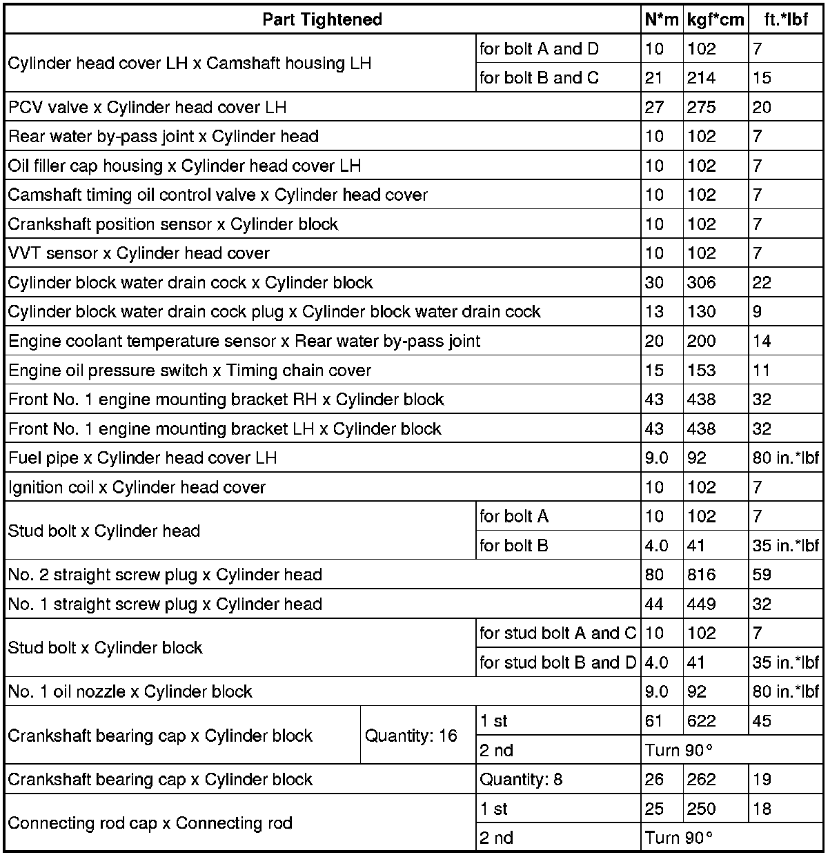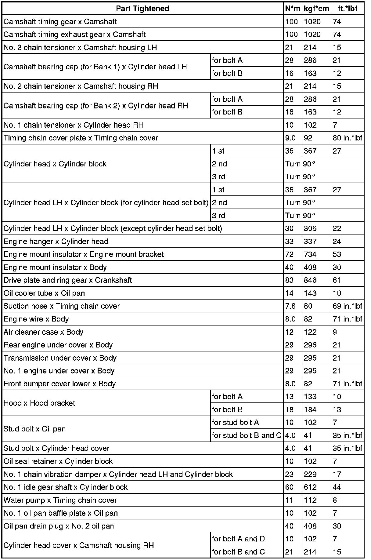 SPECIFICATIONS: 1GR-FE ENGINE MECHANICAL: TORQUE SPECIFICATIONS