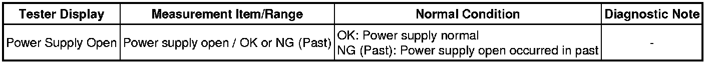 NG -- READ VALUE USING TECHSTREAM (POWER SUPPLY OPEN) AND CHECK FOR DTC