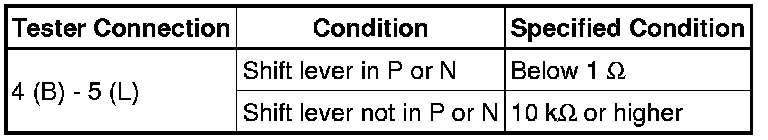 5. INSPECT PARK/NEUTRAL POSITION SWITCH